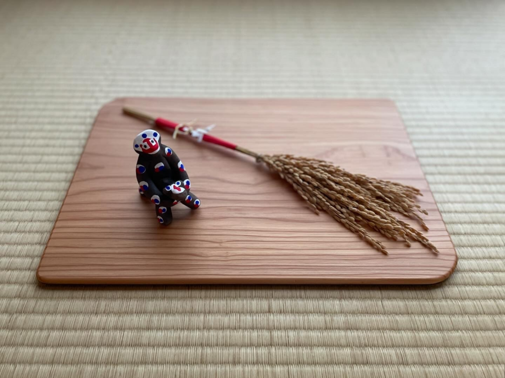 古来魔除けとして飾られていた熊本を代表する民藝「木の葉猿」を稲守りと合わせました。