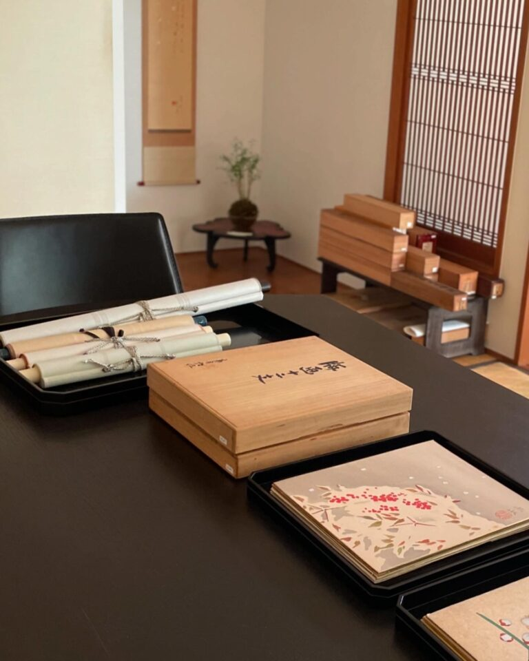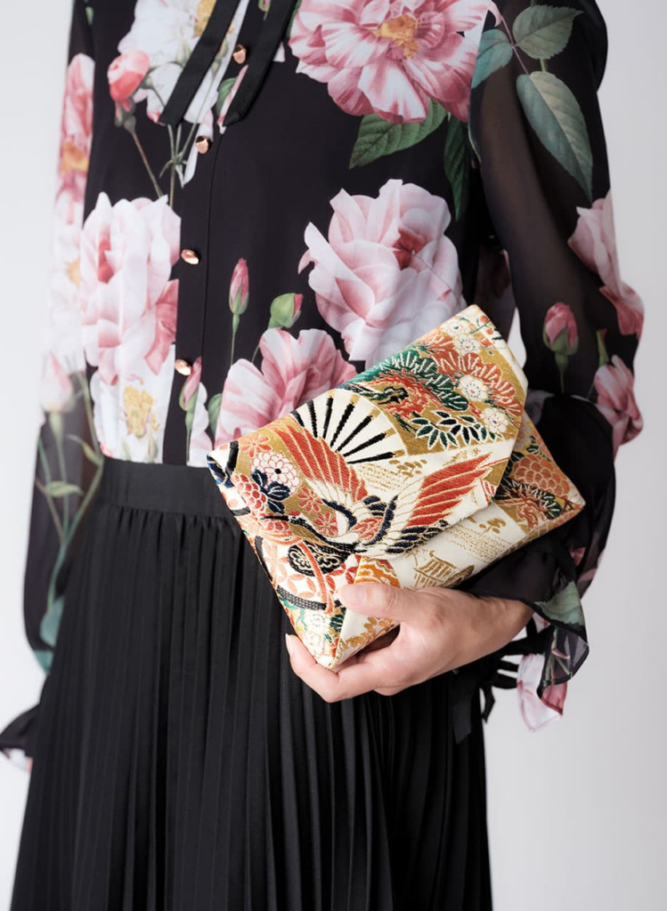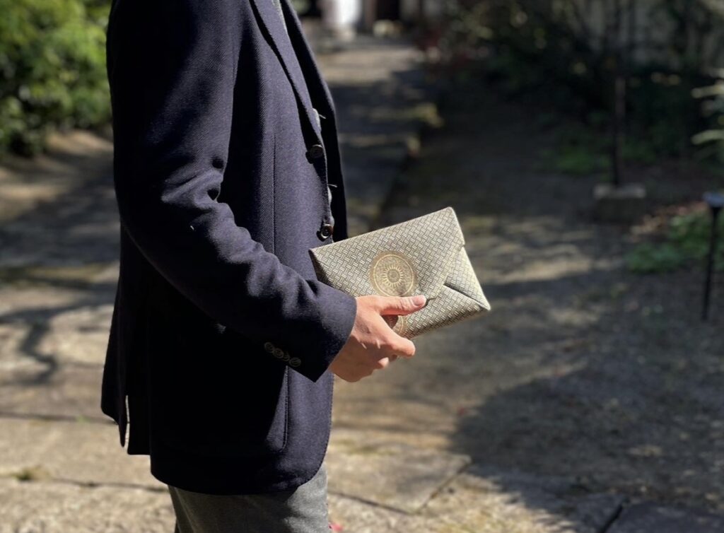 バックのデザインは茶室専用のクラッチバック『数寄屋袋』を採用いたしました。