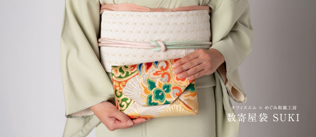現代のライフスタイルに合わせ着物をバックにアップデートし着物バックブランド『SUKI』を立ち上げました。
