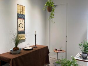 熊本市並木坂にあるBookCafe共栄堂さんのモダンな空間での出張室礼講座のお月見の室礼です。 円相の掛軸を月にみたて、 芒の苔玉とお月見団子として但馬屋(大分)の荒城の月を重ねました。 秋分の日を境に夜が長くなり、太陽 … 続きを読む 四季を愉しむ『室礼歳時記』 中秋の名月