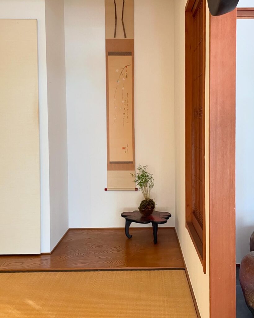 床の間が整ったら基本の室礼(掛軸、花器、花)を見ていただきます。