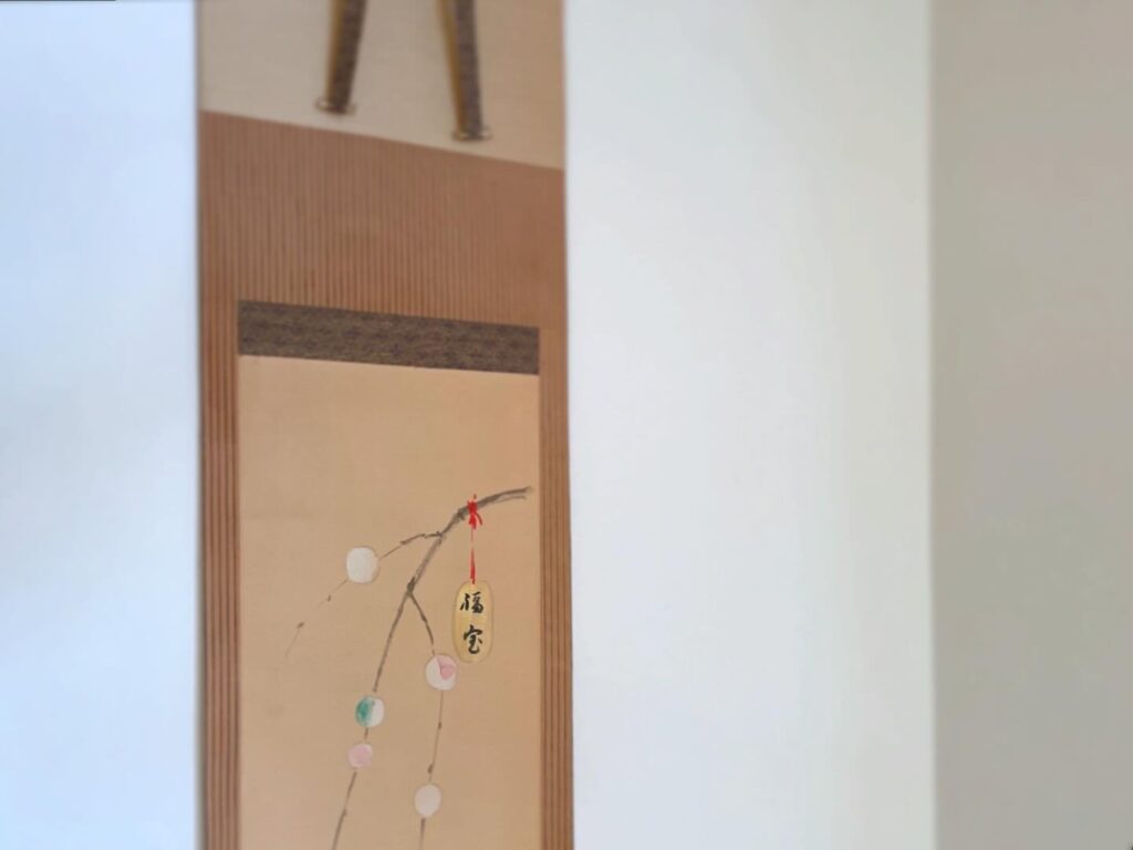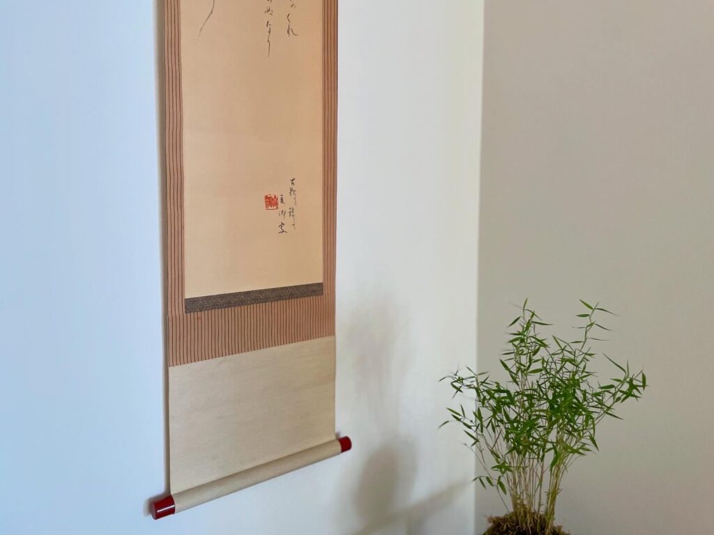 最後に掛軸+花の組合せに戻りますが、お花のいけ方で雰囲気が変わります。