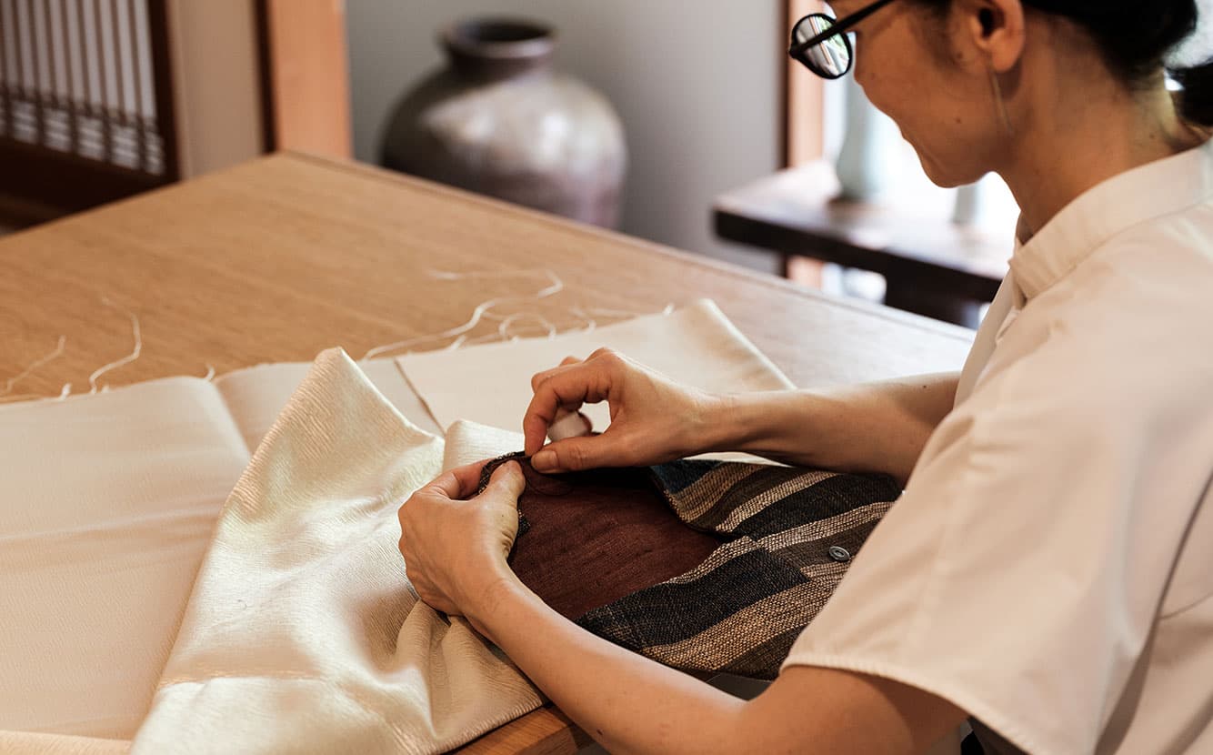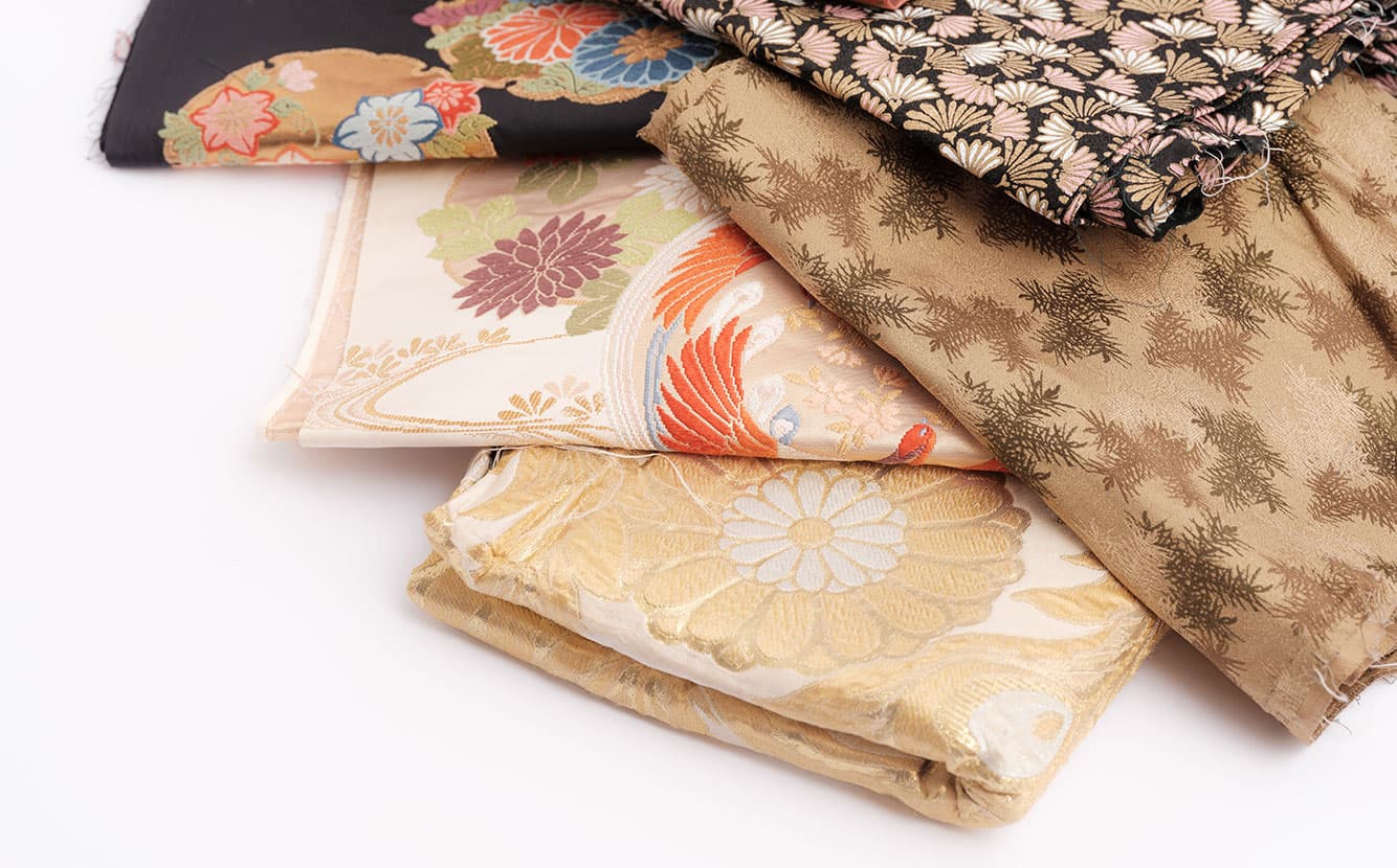 アンティークの着物や小倉織など、日本古来の生地だけではなく、表情豊かなヨーロッパのファブリック、ラオスの豊かな自然で産まれる素朴で温かみのある草木染め、手織り布など、世界中の文化・歴史背景のある布を使用しています。