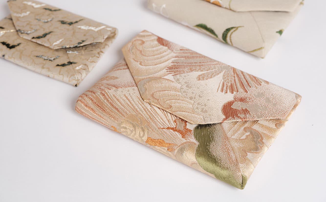 職人の細やかな針仕事で、1点1点を大切に仕上げているため、商品によってはお時間がかかるものもございます。また、布地にはそれぞれの個性があるため、同じ数寄屋袋でも少しずつ表情が違います。それも一点ものの魅力としてお楽しみください。